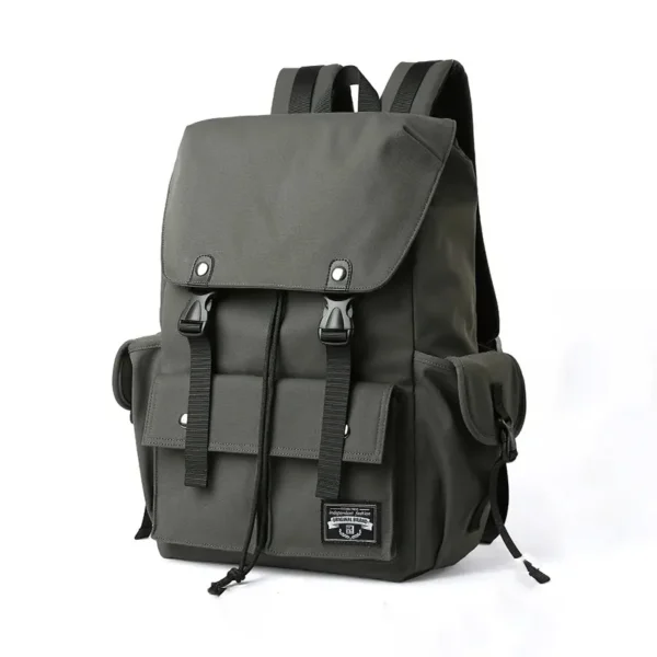 Meet the trendy men's backpack that perfectly marries practicality with cutting-edge design. Its robust material resists wear and tear, while adjustable shoulder straps ensure maximum comfort. Packed with multiple pockets, including strong metal snap closures for added security, this bag effortlessly transitions from work to outdoor escapades, making it the ideal choice for modern, on-the-go lifestyles.